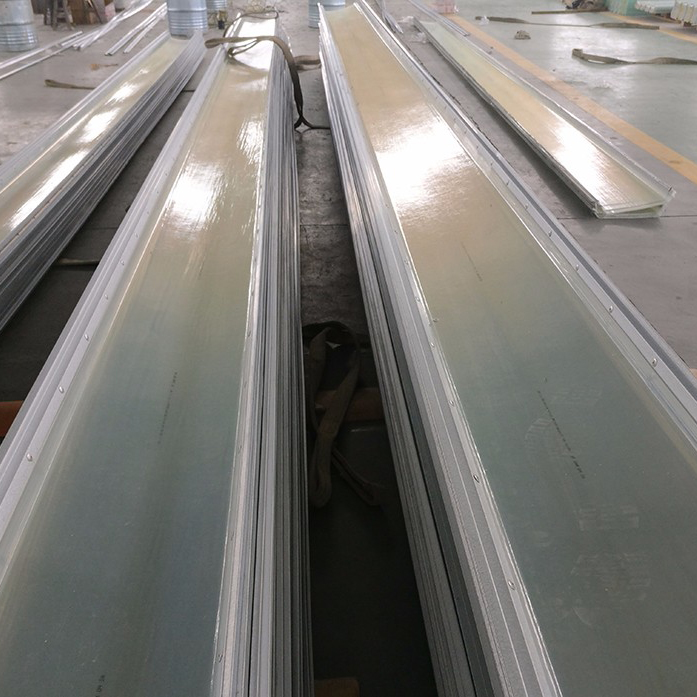 采光瓦要由高性能上膜、強(qiáng)化聚脂和玻璃纖維組成,其中上膜要起到很好的抗紫外線抗靜電的作用,抗紫外線是為了保護(hù)FRP采光板的聚酯不發(fā)黃老化,過早失透光特性